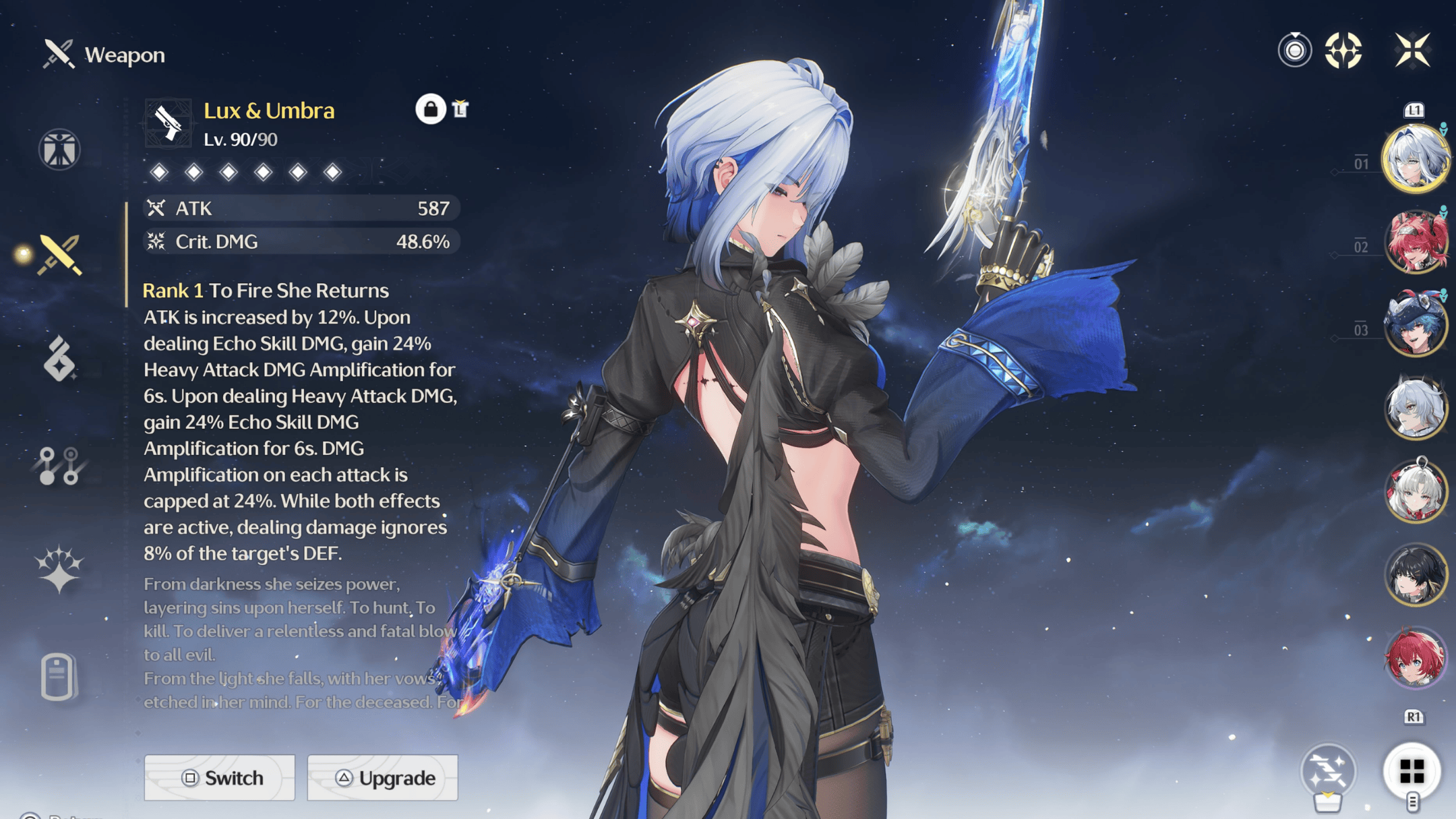 Galbrena’s signature (Lux & Umbra) has a passive that can provide 12% ATK, 24% Heavy ATK DMG, and Echo Skill DMG Amplification, as well as 8% DEF ignore.