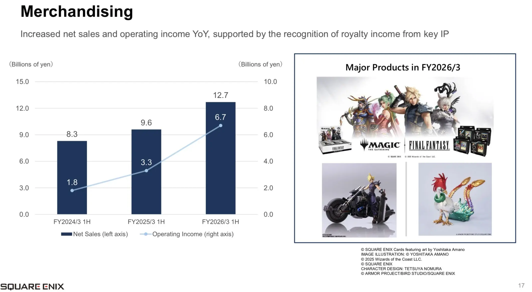 Interestingly, merchandising had the biggest win, jumping +32%, largely thanks to the Final Fantasy x Magic: The Gathering collaboration.