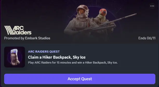 - Launch ARC Raiders via Discord and play for 15 minutes to complete it.