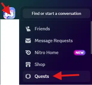 - Look for the “Quests” tab in your sidebar or the gift icon in the bottom-left corner.