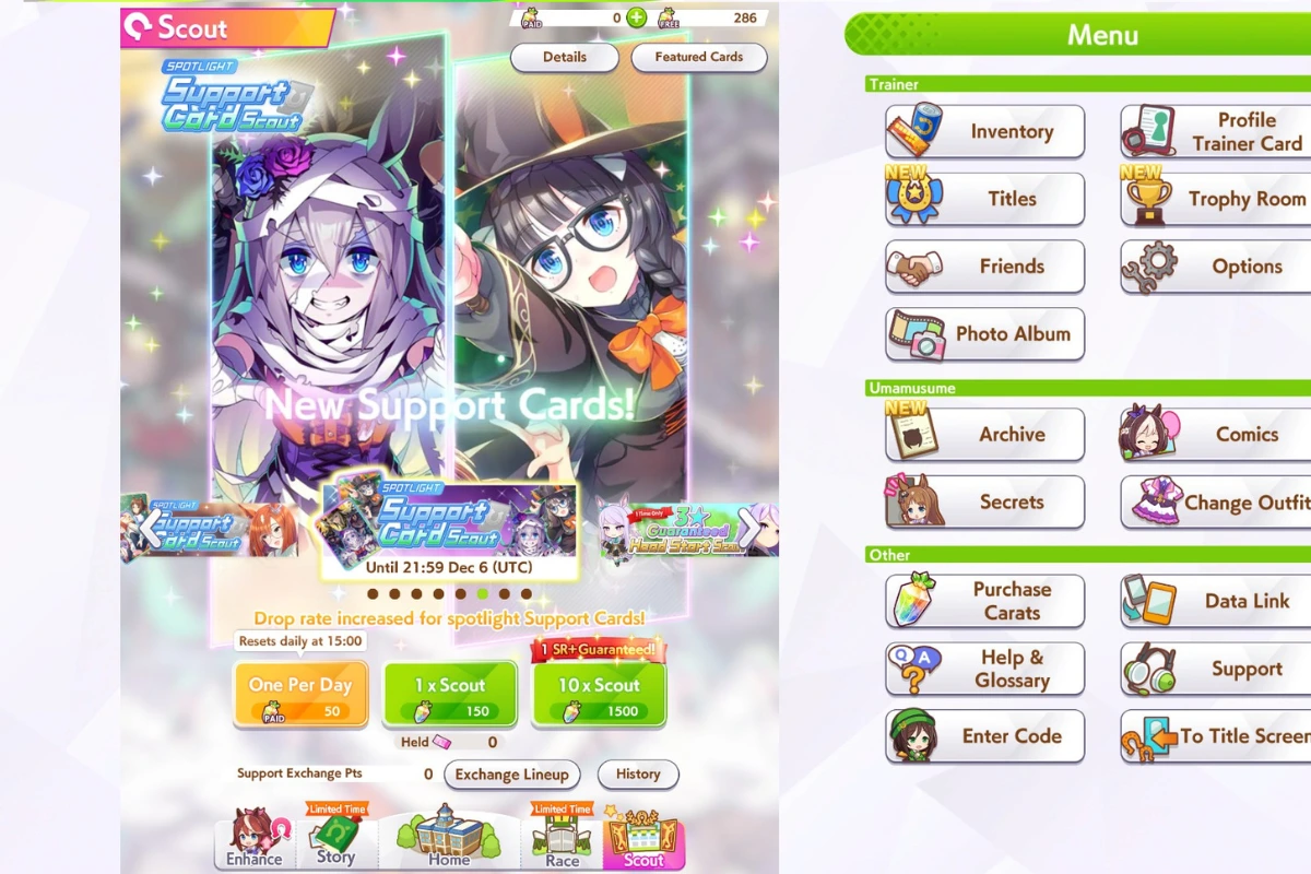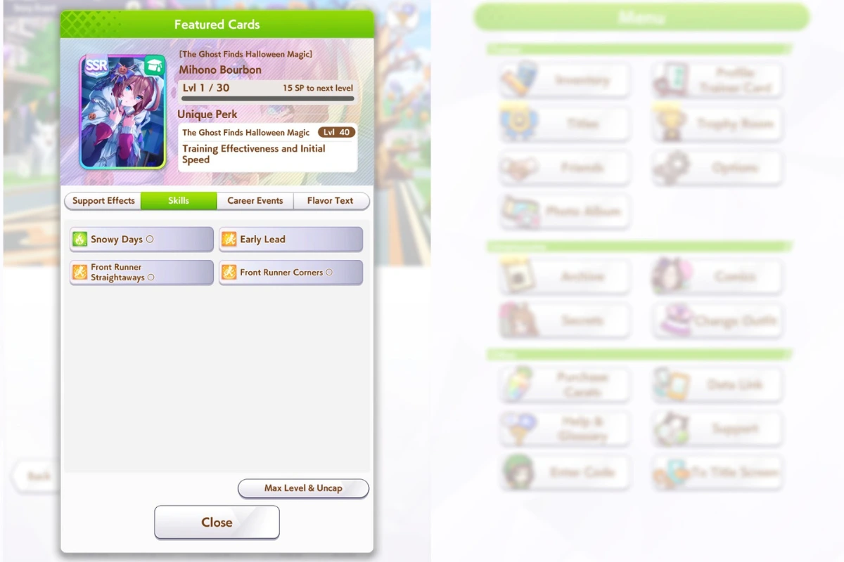 The Halloween Makeover story features 8 episodes, and each of them can be unlocked by gathering event points. Furthermore, you can also get [The Ghost Finds Halloween Magic] Mihono Bourbon’s SSR Wit Support Card as a reward for watching the final event story episode.