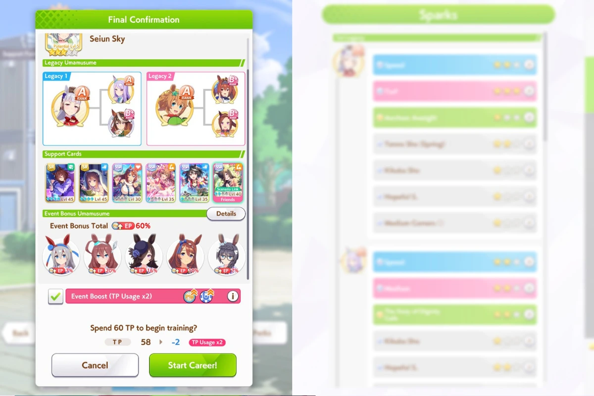 However, keep in mind that this feature only affects the event rewards and will have no effect on regular rewards obtained from the Career mode. You can further enhance the event points received at the end of the Career by using Support Cards of Umas featured in the event, such as Super Creek, Rice Shower, and Mihono Bourbon.