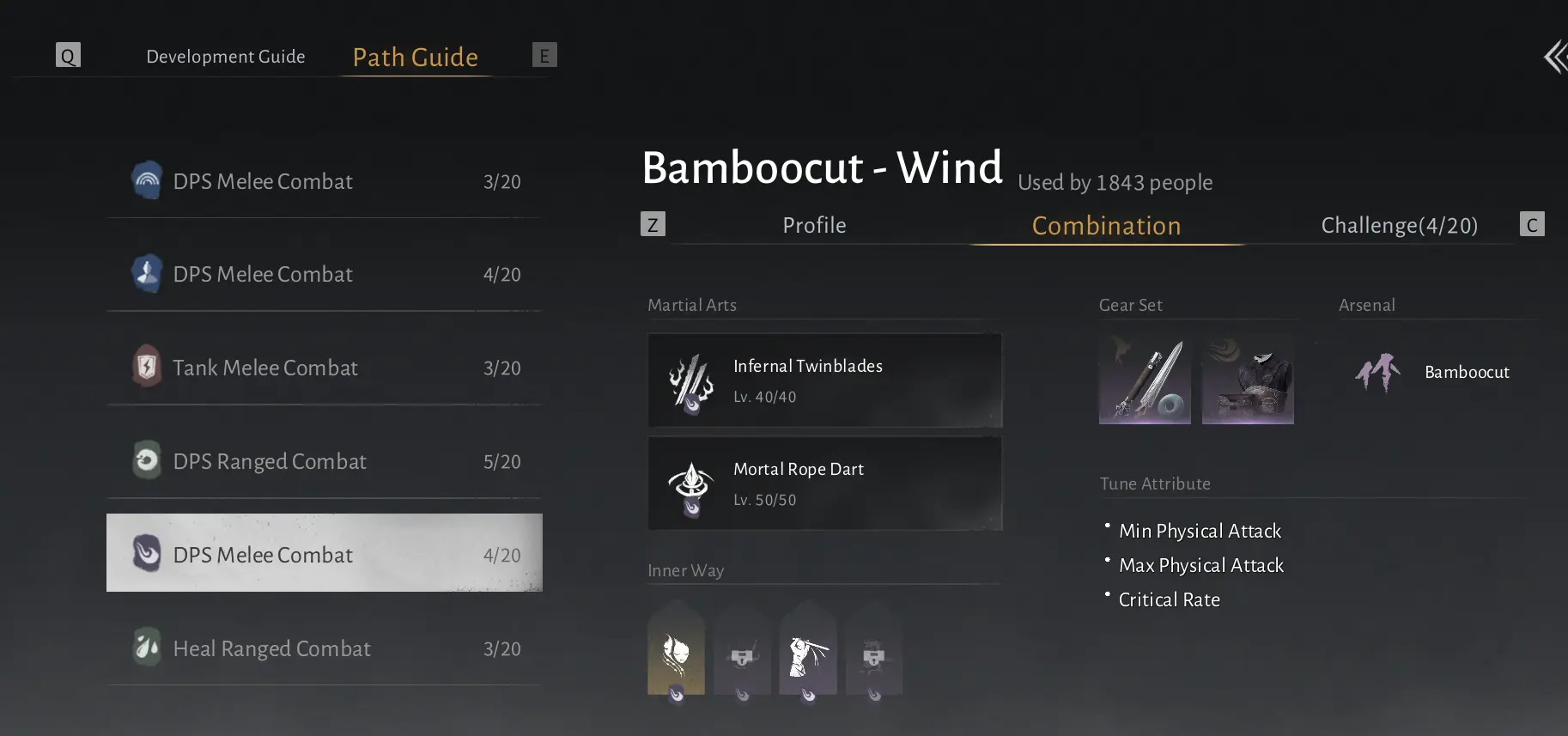 From there, open the Combination tab, which acts as a full build recommendation system.
