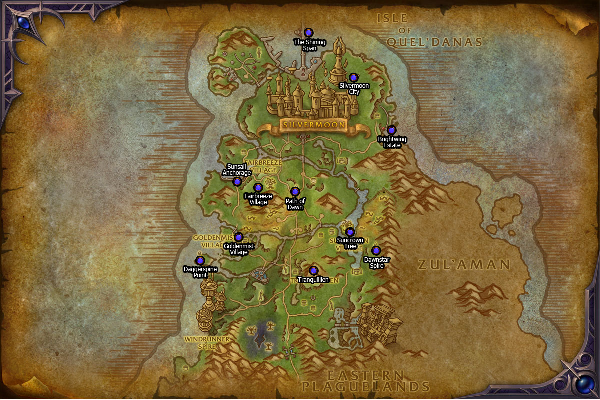 | Path of Dawn | East of Fairbreeze Village, on the top level of a spire near the main road leading to Silvermoon. | |