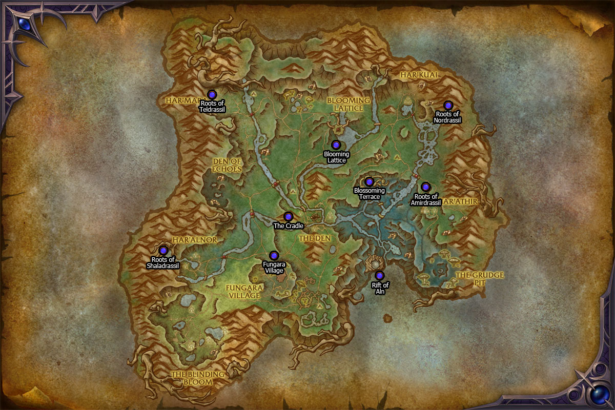 | Roots of Nordrassil | Southwest of Har'kuai, on top of a mountain, above a waterfall near the map's edge. | |