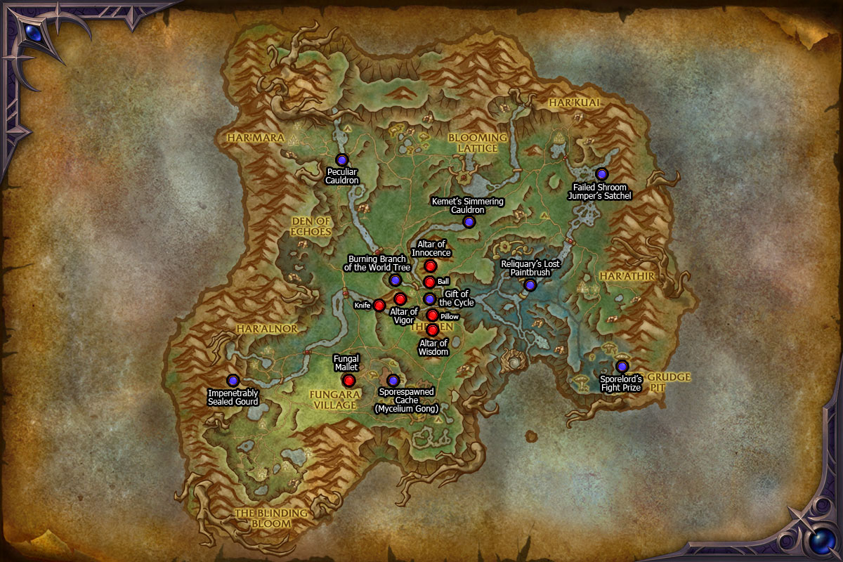 | Failed Shroom Jumper's Satchel | Southeast of Har'kuai, on top of a cliff running down the river. | |