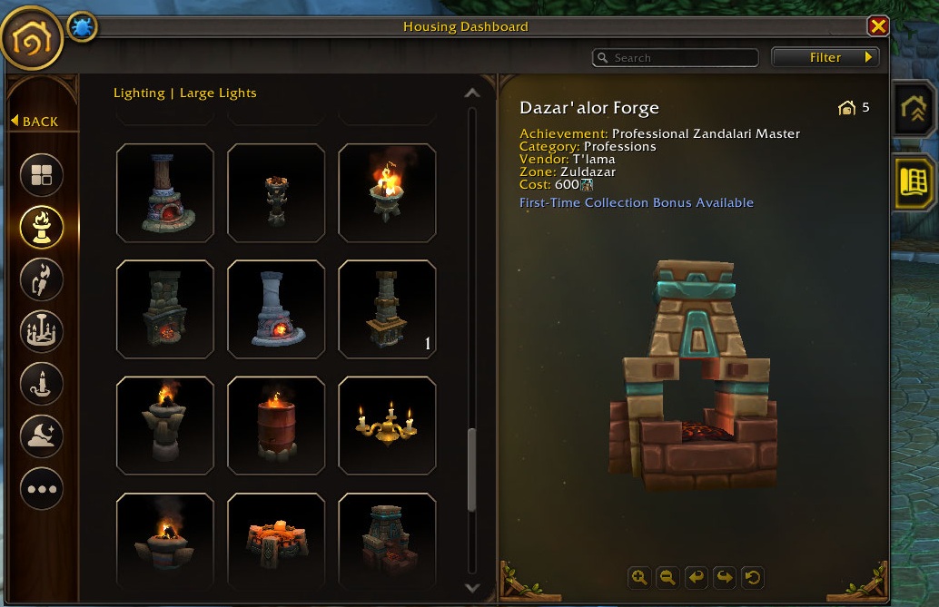You'll find thematic decor from all manner of races, factions, and expansion storylines, including: