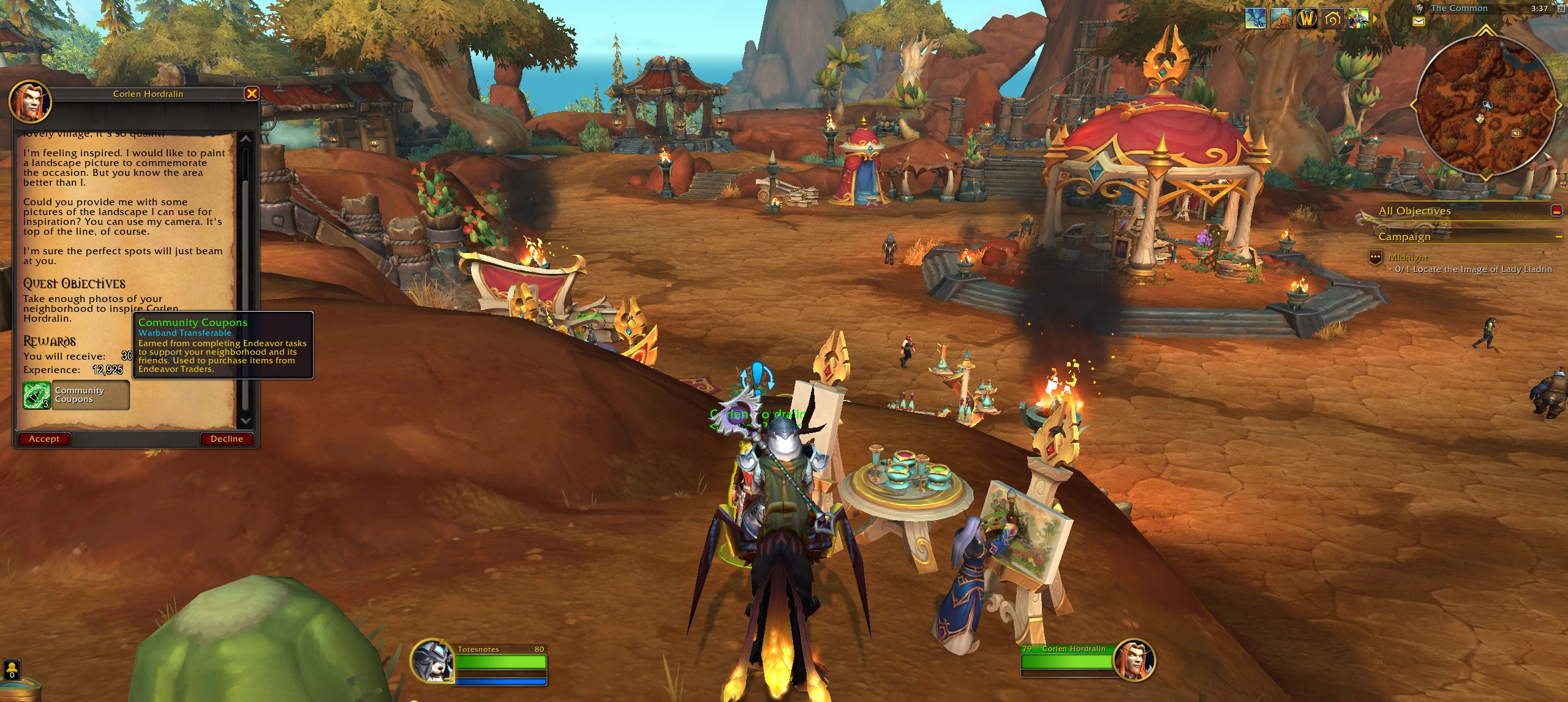 Much like the Trading Post interface, the Endeavors Tab offers players a selection of Endeavor Tasks; completing these quests will fill your personal Endeavor Progress Bar, thereby earning Neighborhood Favor. Task completion also rewards things like gold, character experience, Housing Experience, crests, and Community Coupons. Community Coupons are Warbound, making Endeavors a useful way to play around with alts while also earning the exclusive currency. Certain NPCs may also offer Endeavor-exclusive quests for the duration of the event.