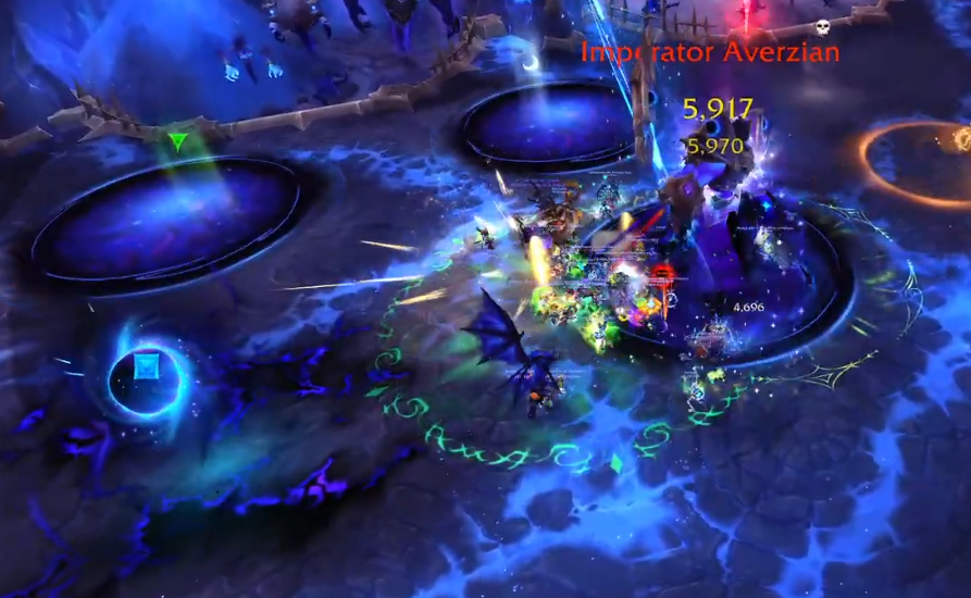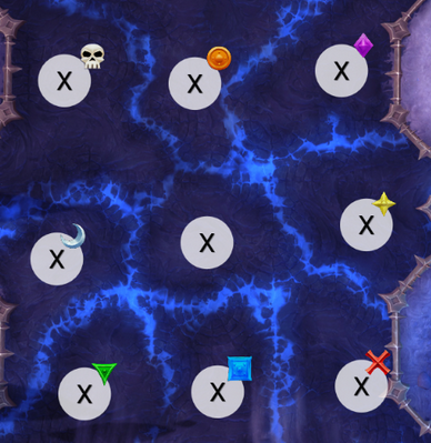- 3 Abyssal Voidshapers will spawn which are immune to damage. They are all casting a spell which will claim one of the 9 areas of the room. If 3 of these areas claimed are in a row you will wipe.