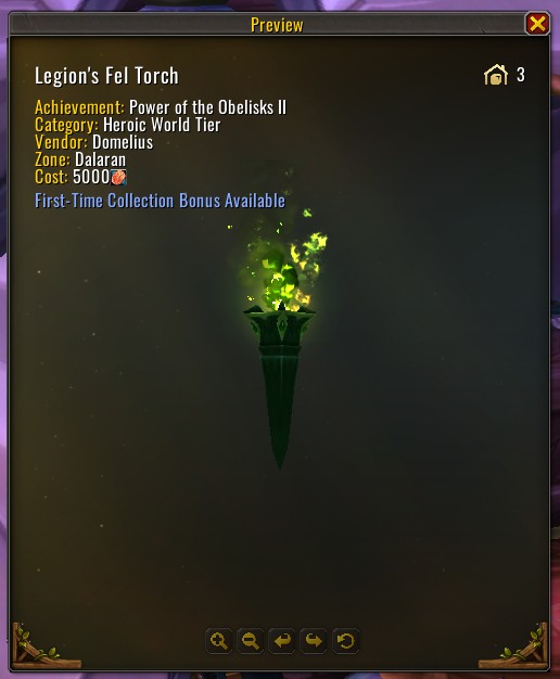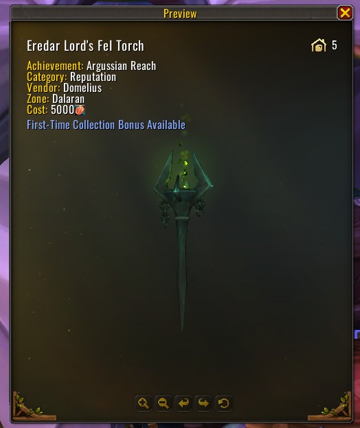 Eredar Lord's Fel Torch is obtainable via the Argussian Reach Achievement, and can be purchased for