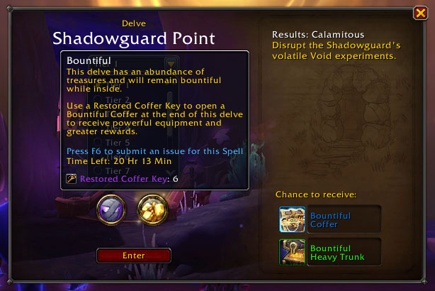 Found only inside Bountiful Delves, Bountiful Coffer is an epic chest that contains the best