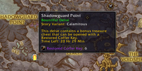 A timer will be displayed indicating the remaining time before another Delve becomes Bountiful. As a rule, Bountiful Delves are rerolled on the daily reset.