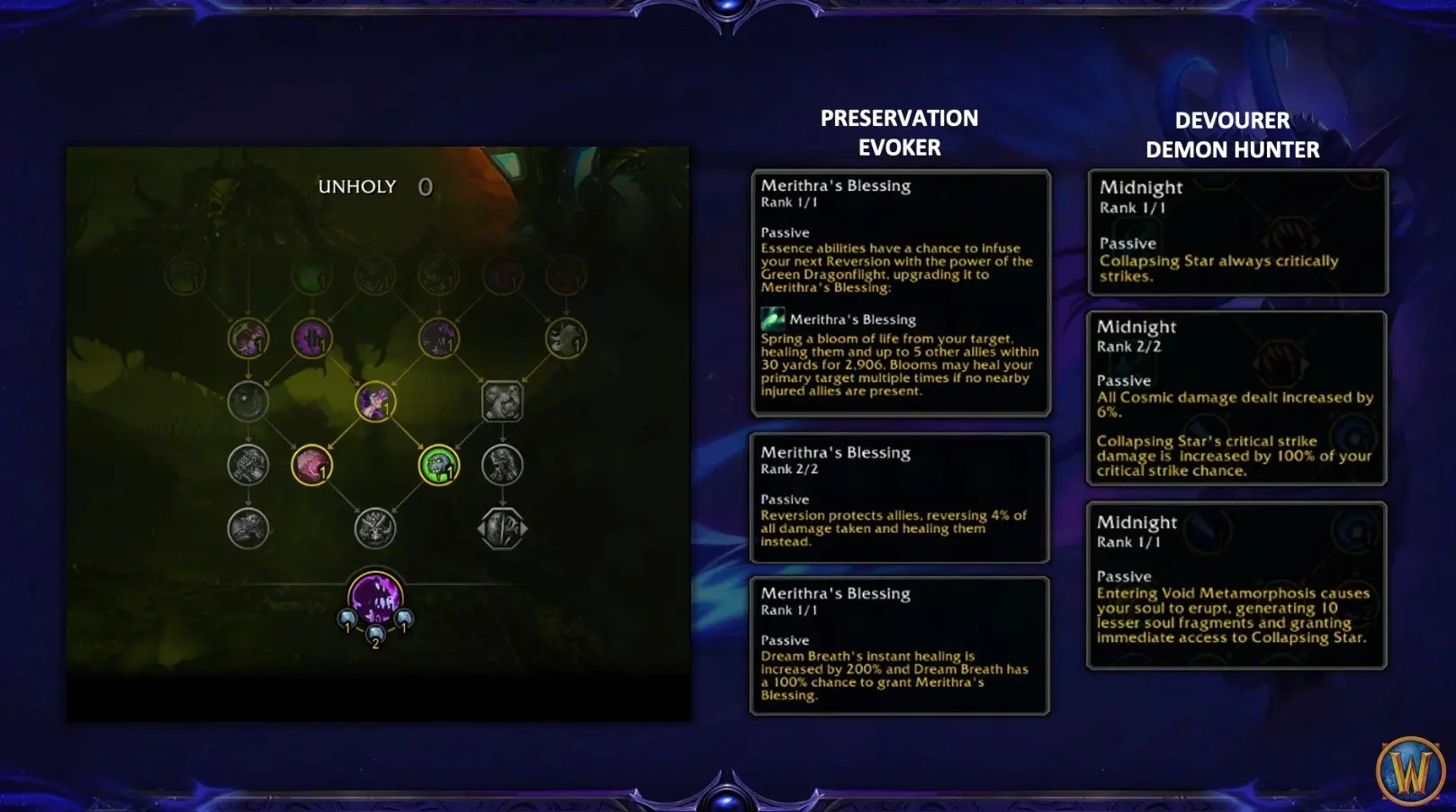 While we will delve deeper into the individual class changes when Alpha testing launches, the Midnight expansion introduces 10 new talents for all classes. These are distributed as follows: