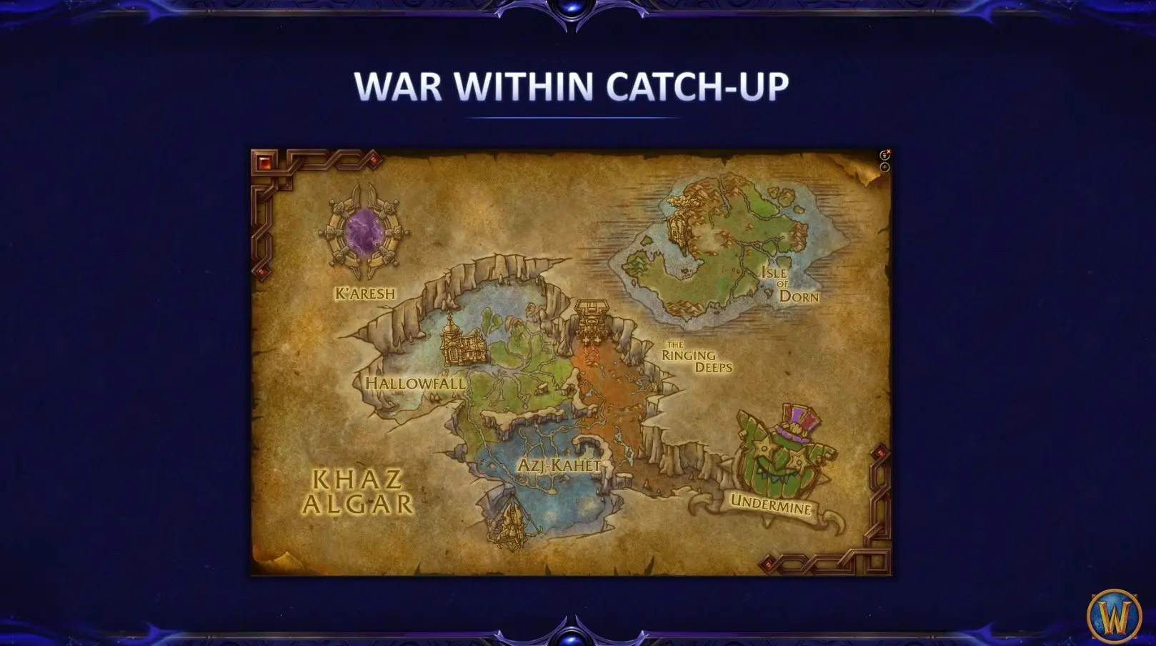A War Within recap has been added. This is a multi-hour experience that takes you through the whole expansion. This will take new players from 70 to 80.