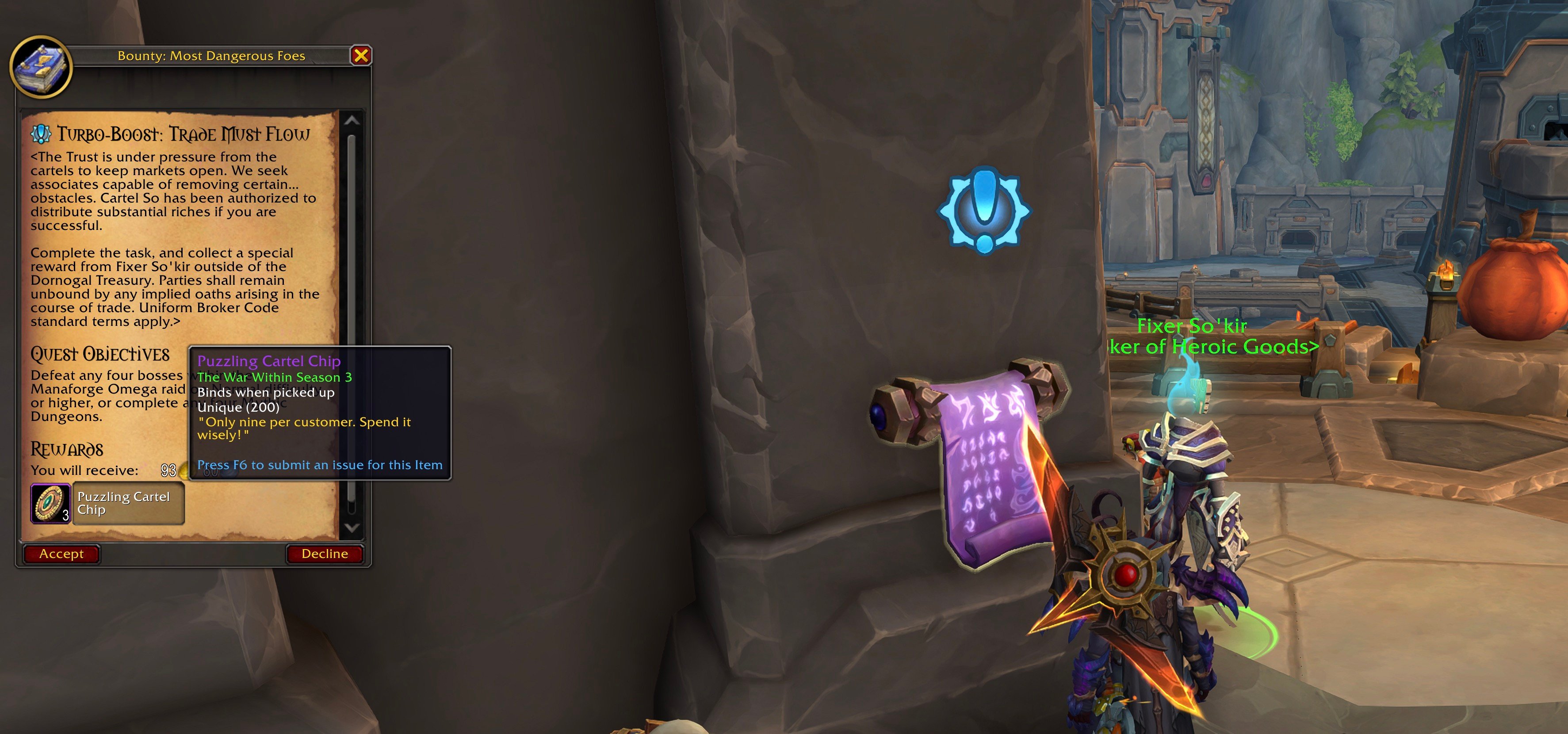 Starting this week, you can grab a new one-time quest in Dornogal that rewards you with your first 3 Puzzling Cartel Chips!