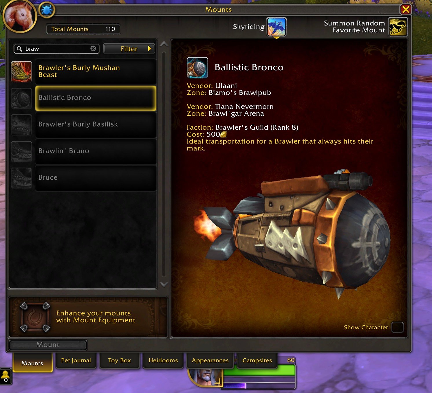 There are two new mounts currently sourced to The Brawler’s Guild! First, there’s Ballistic Bronco.