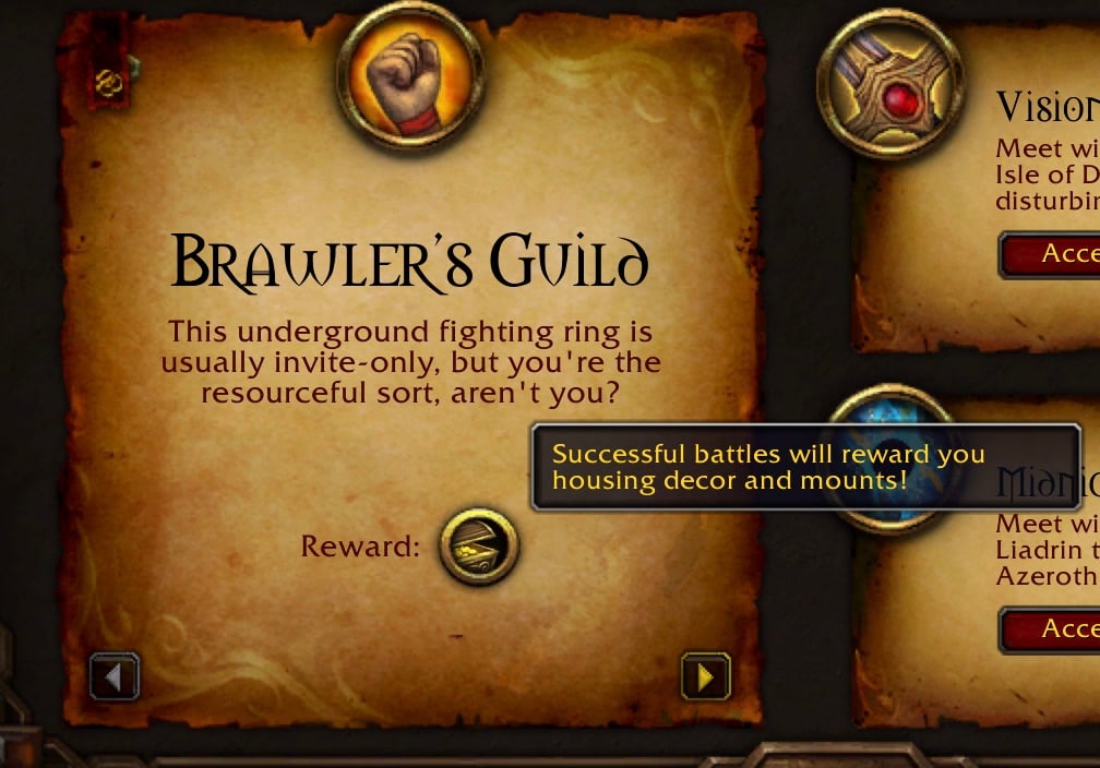 When you go to the Suggested Content tab on the Midnight Alpha, there’s a new entry for The Brawler’s Guild and even a mention that successful battles will reward you housing decor and mounts!