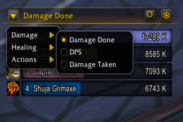 Damage meters are now part of the base game and can be enabled in options under Gameplay Enhancements. The meters can track eight different things, split between Damage, Healing, and Actions. You can open up to three different windows, and by right clicking on a bar you can view a detailed breakdown.