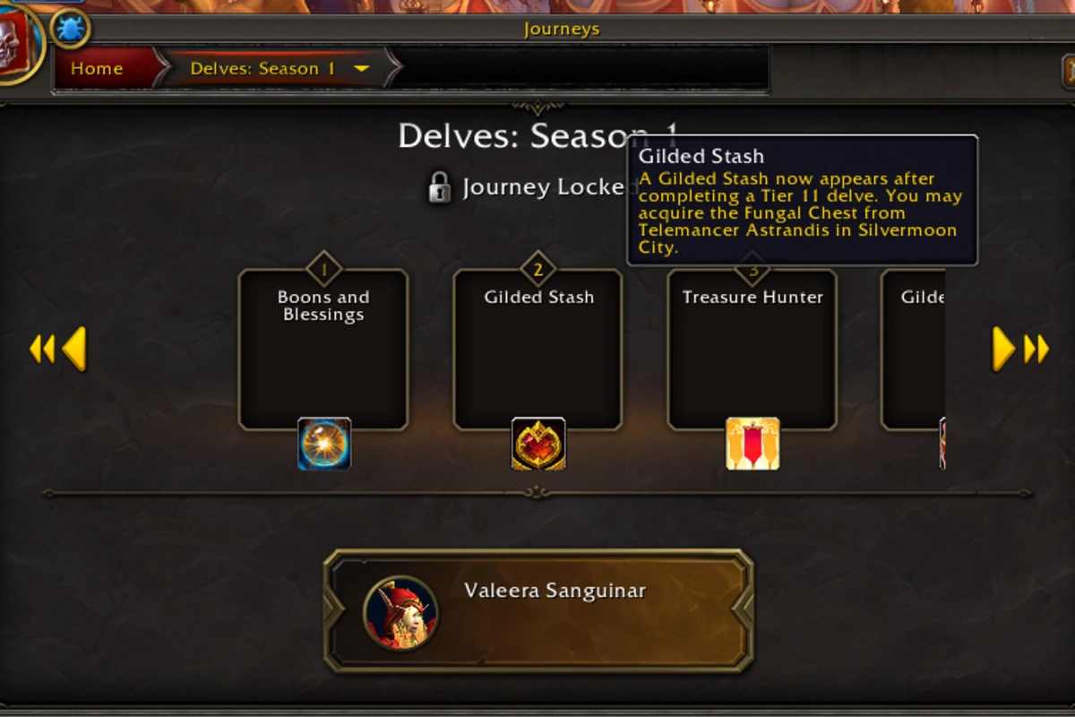 Gilded Stash is a way for players to earn their seasonal gilded crests by doing delves. Capped out at 21 per week, it was added to give players a way to gear up through delves. Blizzard now appears to be putting a restriction on acquiring them, by locking them in the Delver’s Journey.