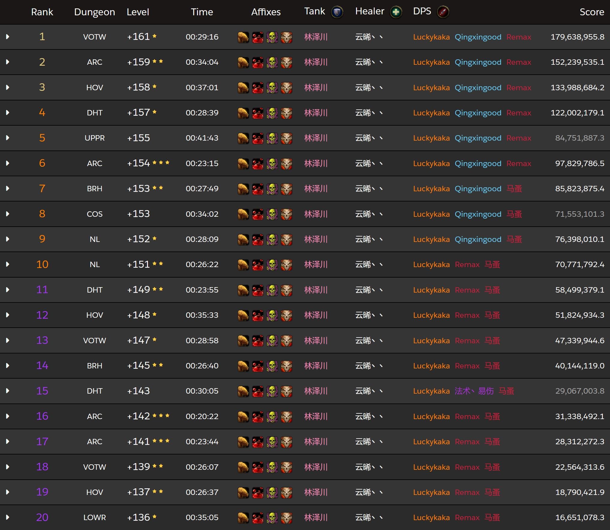 And here’s a look at the top runs, which you can check out over at Raider.IO.