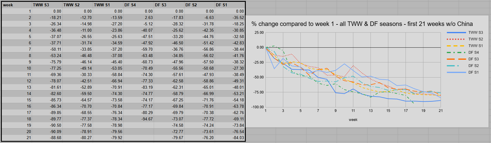 The overall share of the Chinese metrics continues to dwindle. They completed just 38.24% of all runs in week 21. This is the lowest value for the entire season. That share could drop even further within the final 2 weeks.