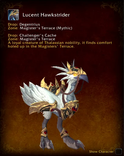Midnight Mythic dungeons provide two Hawkstrider mount opportunities. These mounts can be farmed once daily by running the Mythic 0 dungeon, or multiple times a day by farming Mythic+ keys.