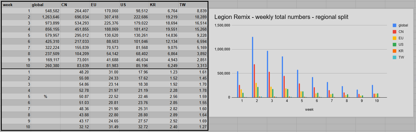 As of this writing, 120 hours after the US reset, hourly numbers for the main regions are slightly behind in both the EU and the US. The trend of less focus on Retail continues in China. Their numbers are 11% lower than in week 18. Next weekend, we will see how big the impact of the holidays is for the final stretch of TWW S3 and Remix.