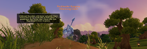 Packleader Kargora says: I followed his orders with honor and pride. Had I known how far he would take us from glory… I would have fled further than I threw that rock. May his spirit know no peace.