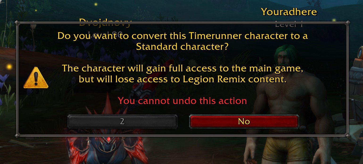 Instead of waiting until the event ends, players will be able to convert their Timerunner to a standard character at any point during Legion Remix.