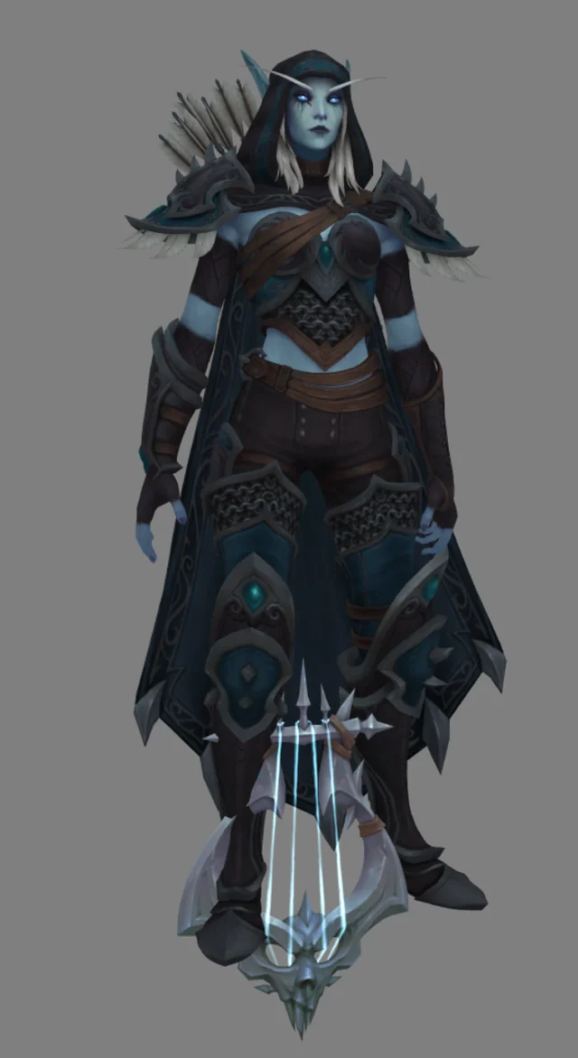 And in fact, the game files contain a new in-game cutscene model of Sylvanas with a maw-themed harp, who will return and sing the above song at some point during the 11.2.7 story. Here’s a better look at the model.