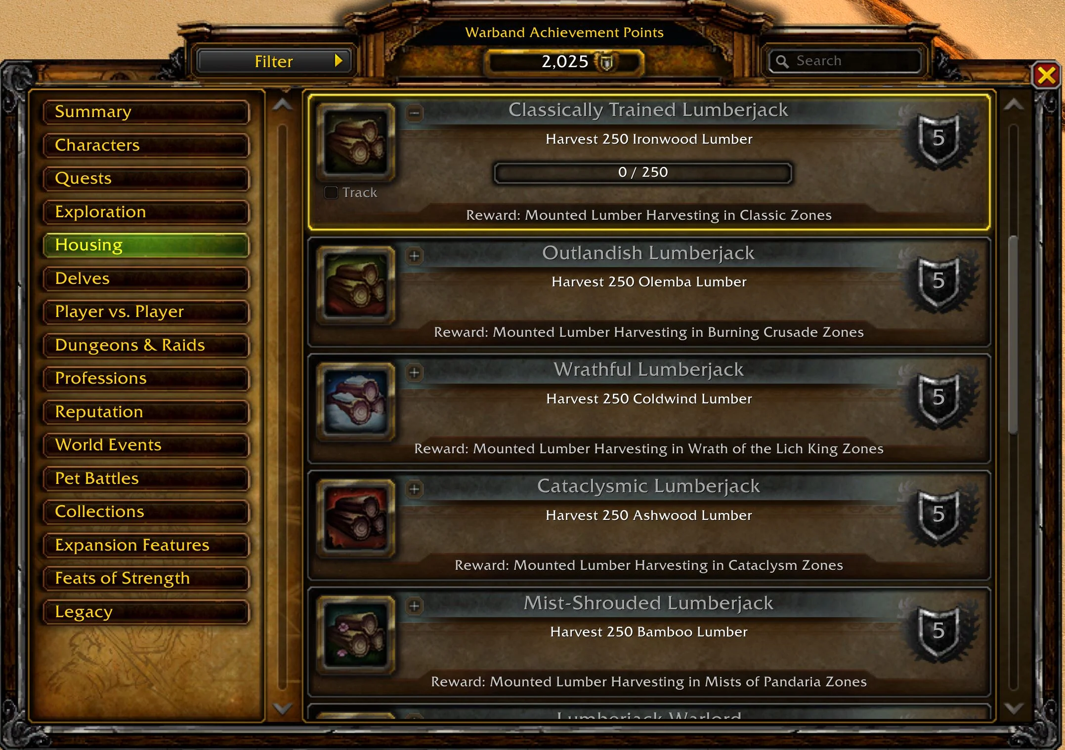 These will come in handy once Midnight arrives as well, as it seems as if we’ll need to re-harvest 250 lumber for each expansion to unlock free logging while mounted, since the achievements aren’t retroactive so far on the beta.