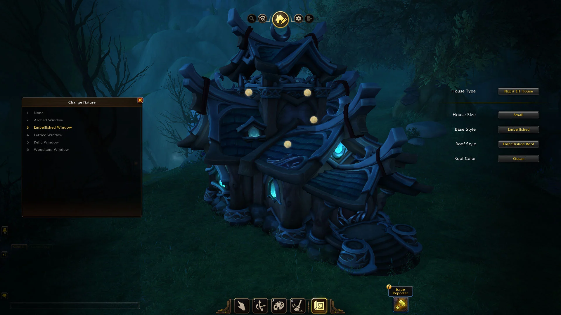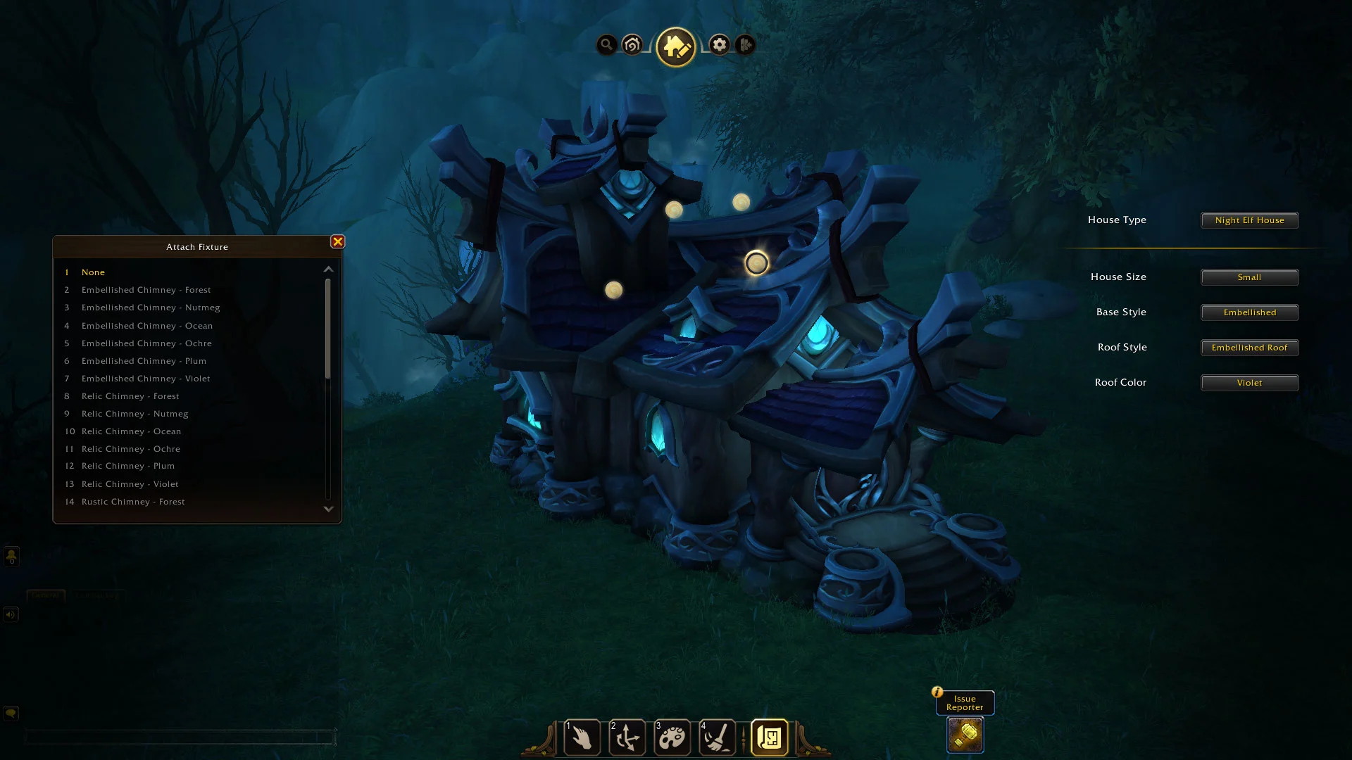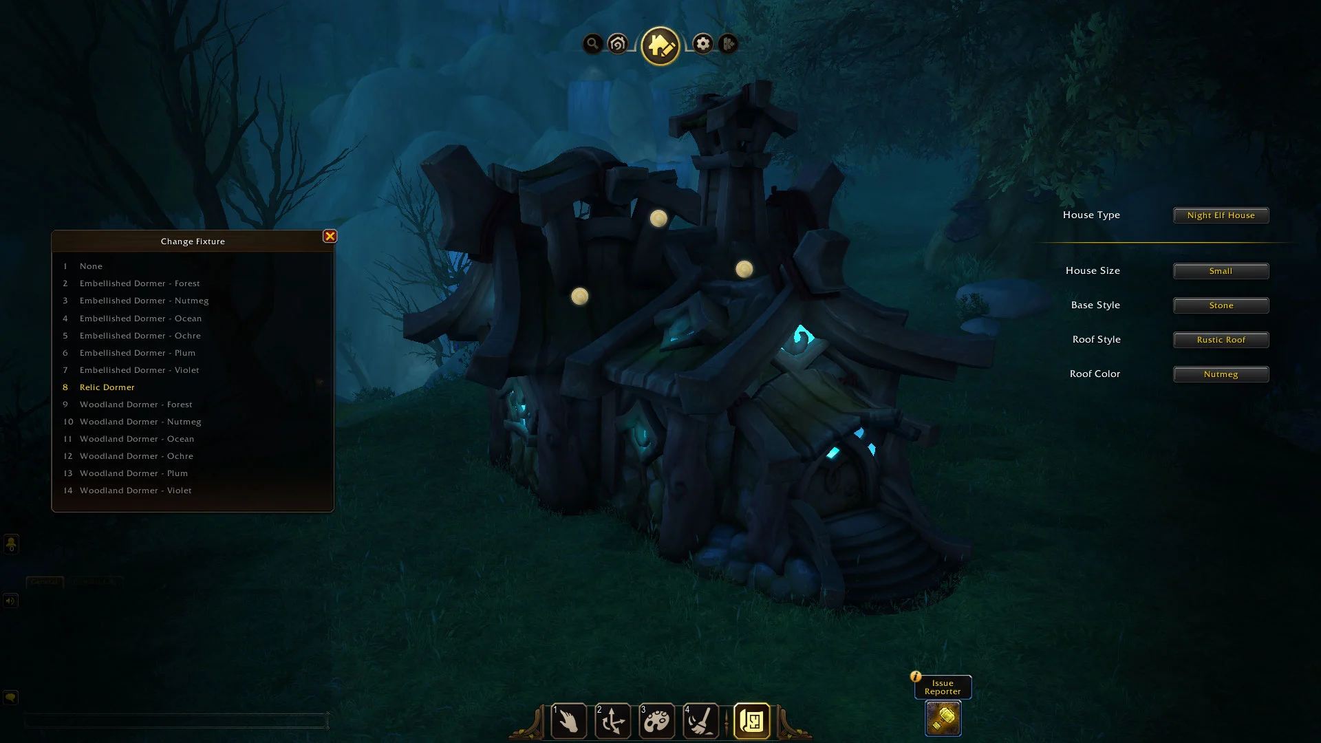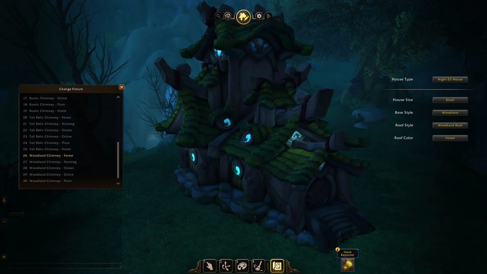 Night Elf exteriors come in three distinct styles—Embelished, Rustic, and Woodland. These houses range from ornate, ceremonial designs to natural homes that feel grown into the forest itself.