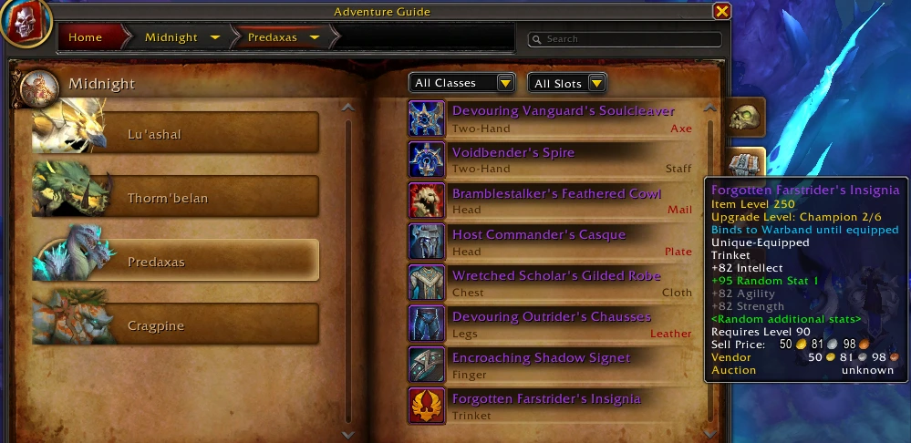 Just like all other Midnight World Bosses, Predaxas drops guaranteed Warbound ilvl 250 Champion-tier gear. Even with being a month into Season 1, it is still worth defeating Predaxas. Not only for the easy gear you can give to your alts.