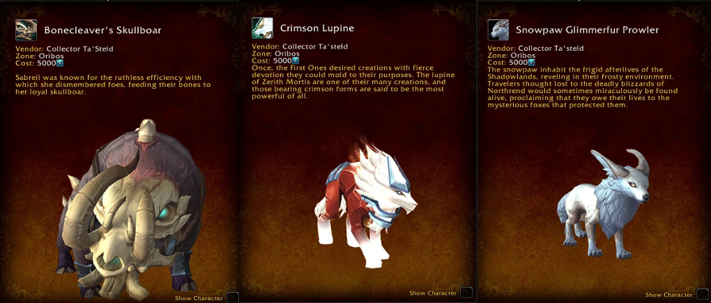 Shadowlands Timewalking debuts in 11.2.7, bringing three new mounts, a battle pet, and two toys to collect. It will be available twice during Turbulent Timeways. The first time between December 2 and December 9, and the second time from February 3 – 10. Here’s a preview of the mounts you can grab.
