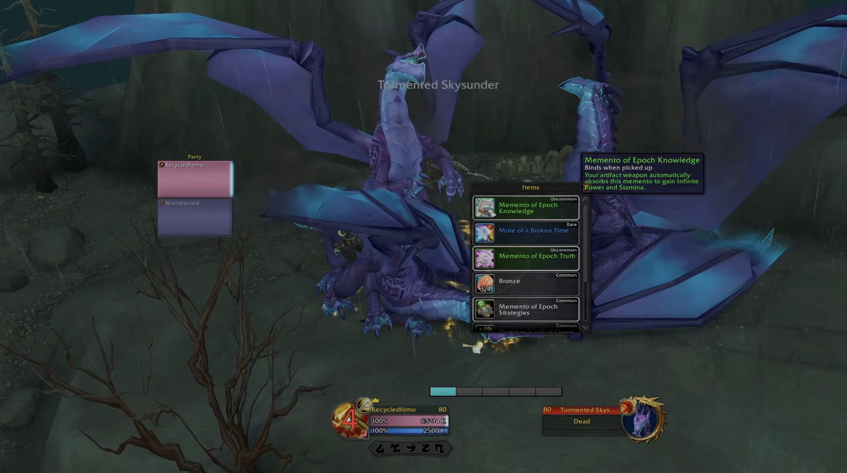 The player created a new char, skipped the Artifact questline and turned on Heroic World Tier difficulty. Then, they ported to Shield’s Rest in Stormheim where level 80 Paladin killed Tormented Skysunders roaming the area and often left the group, most likely to change realms.