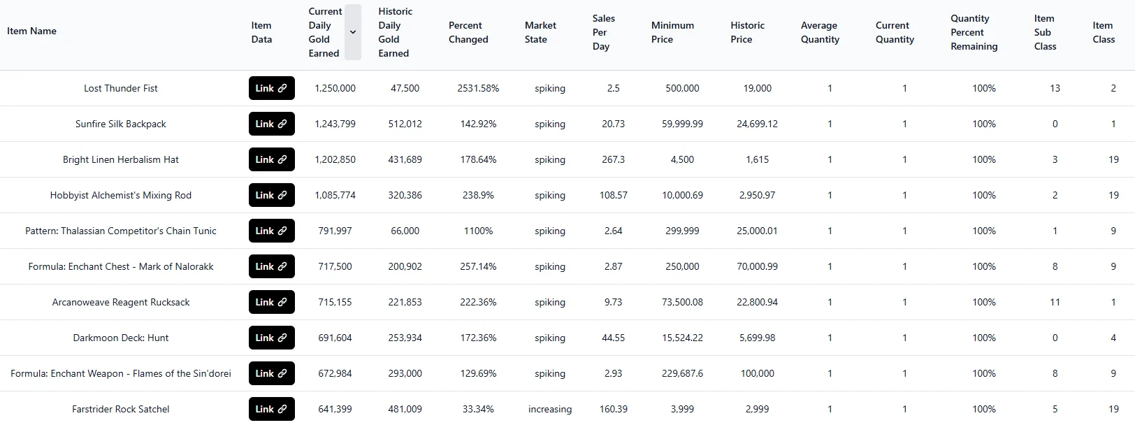 - View the best gold-making items on specific realms