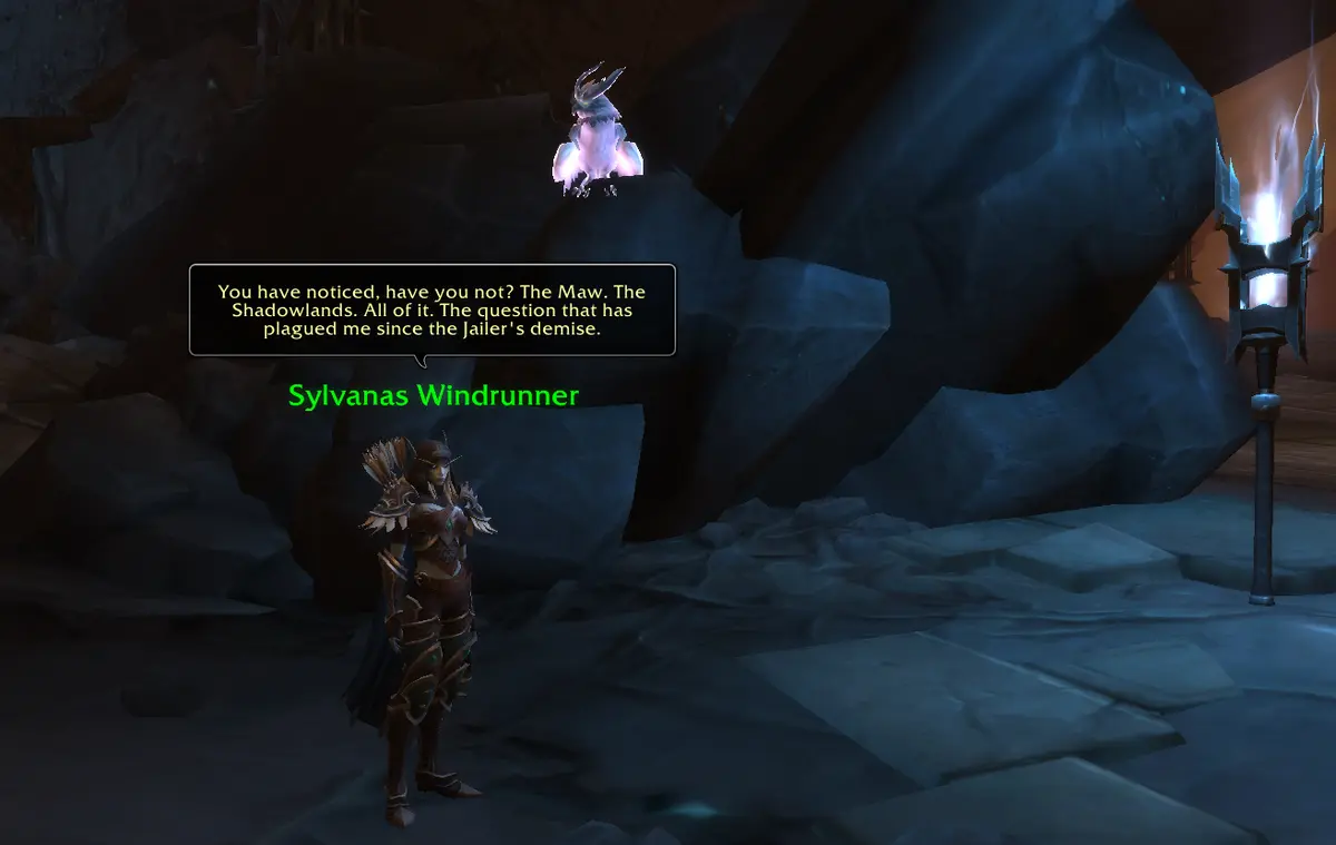Sylvanas Windrunner says: You have noticed, have you not? The Maw. The Shadowlands. All of it. The question that has plagued me since the Jailer’s demise.