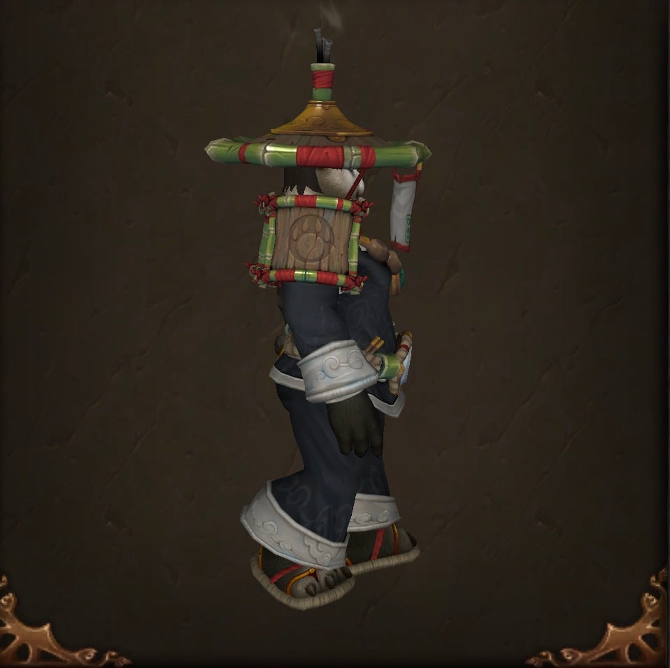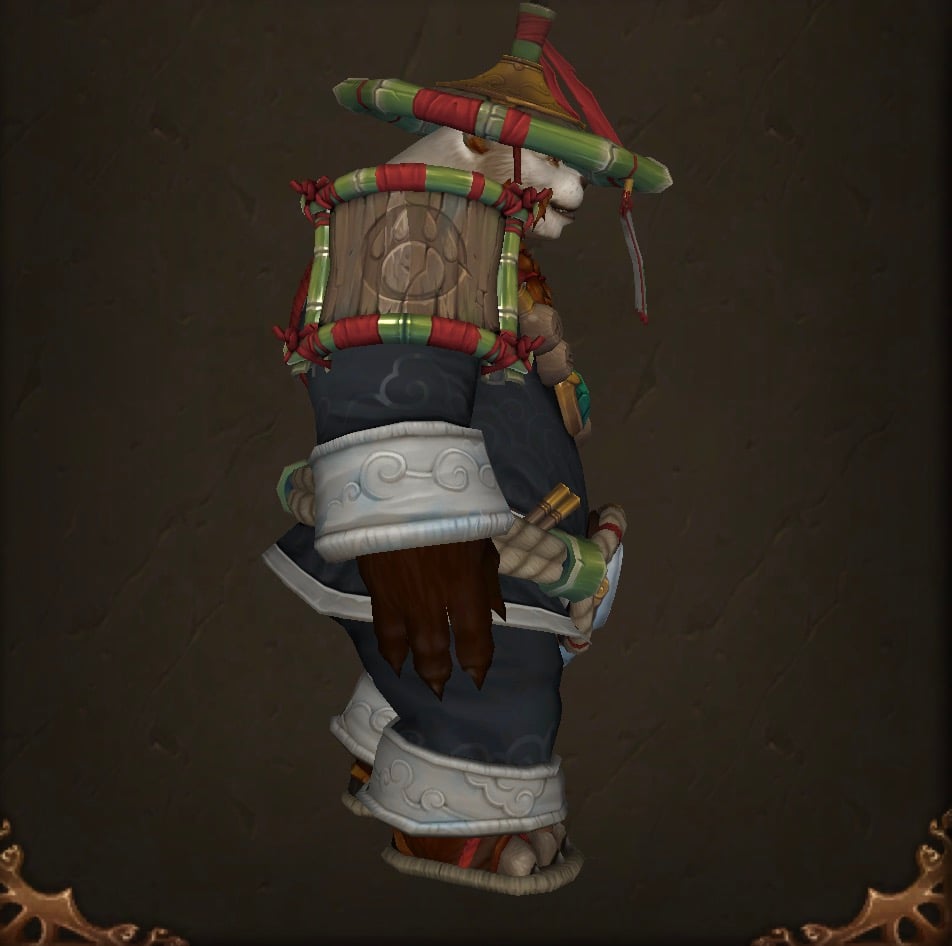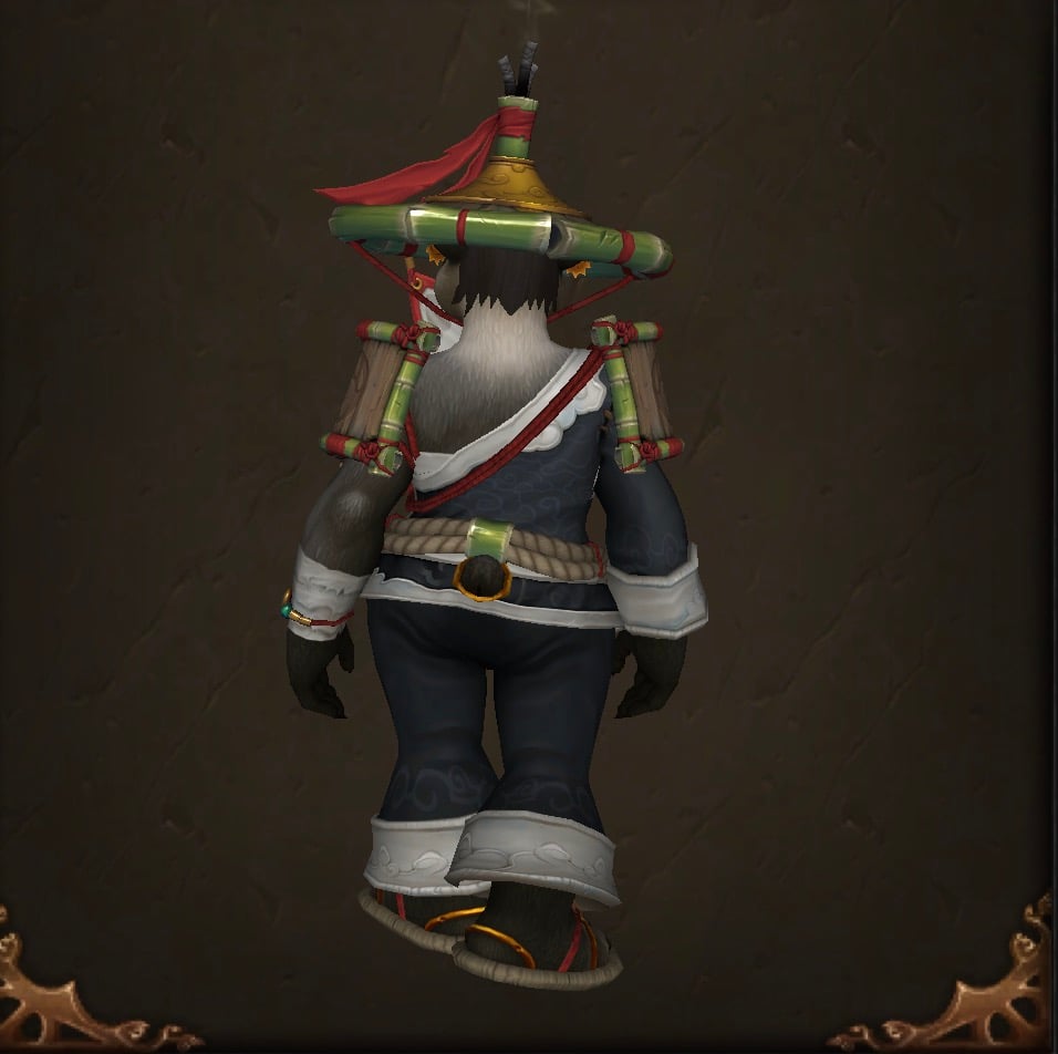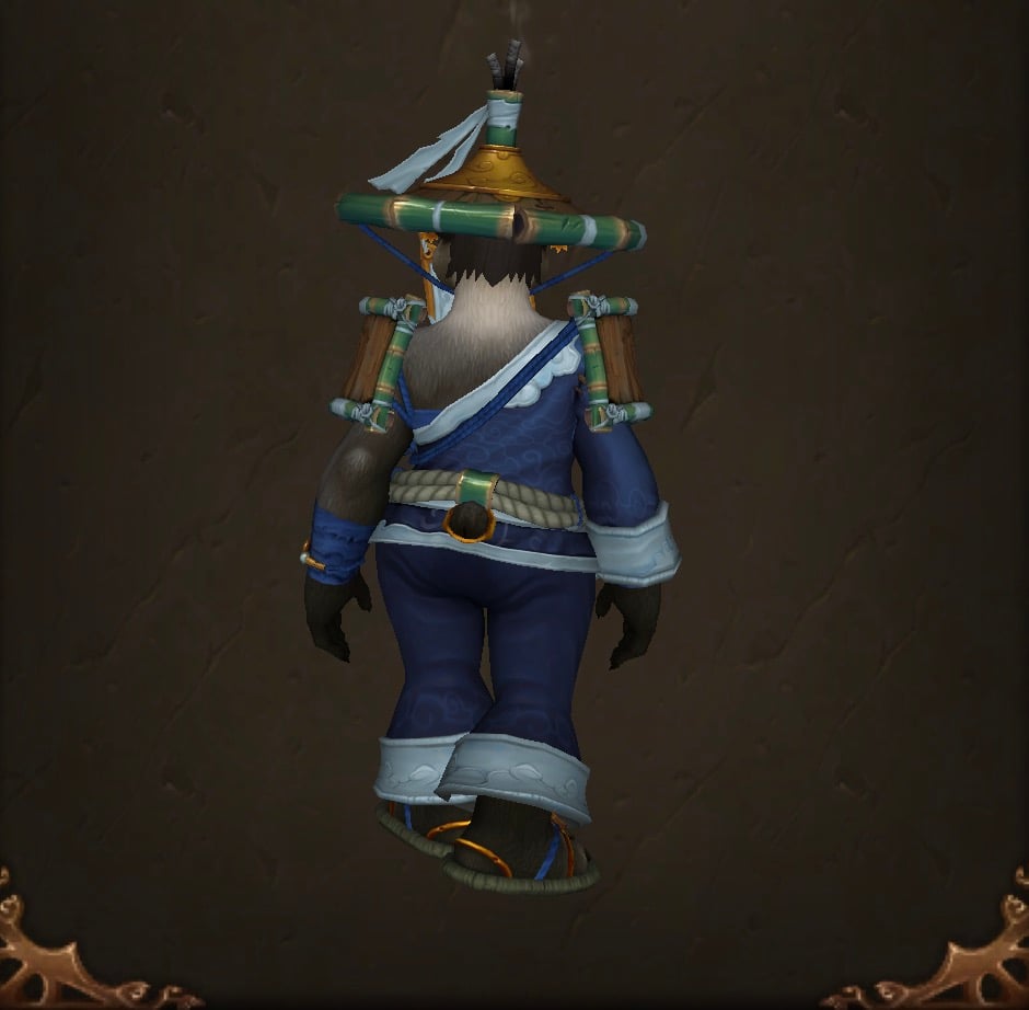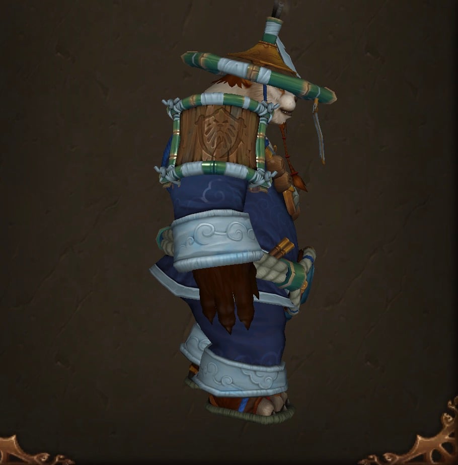Here’s the Tushui Heritage Armor set for the Pandaren who play Alliance. As you can see, it features distinct blue faction features.