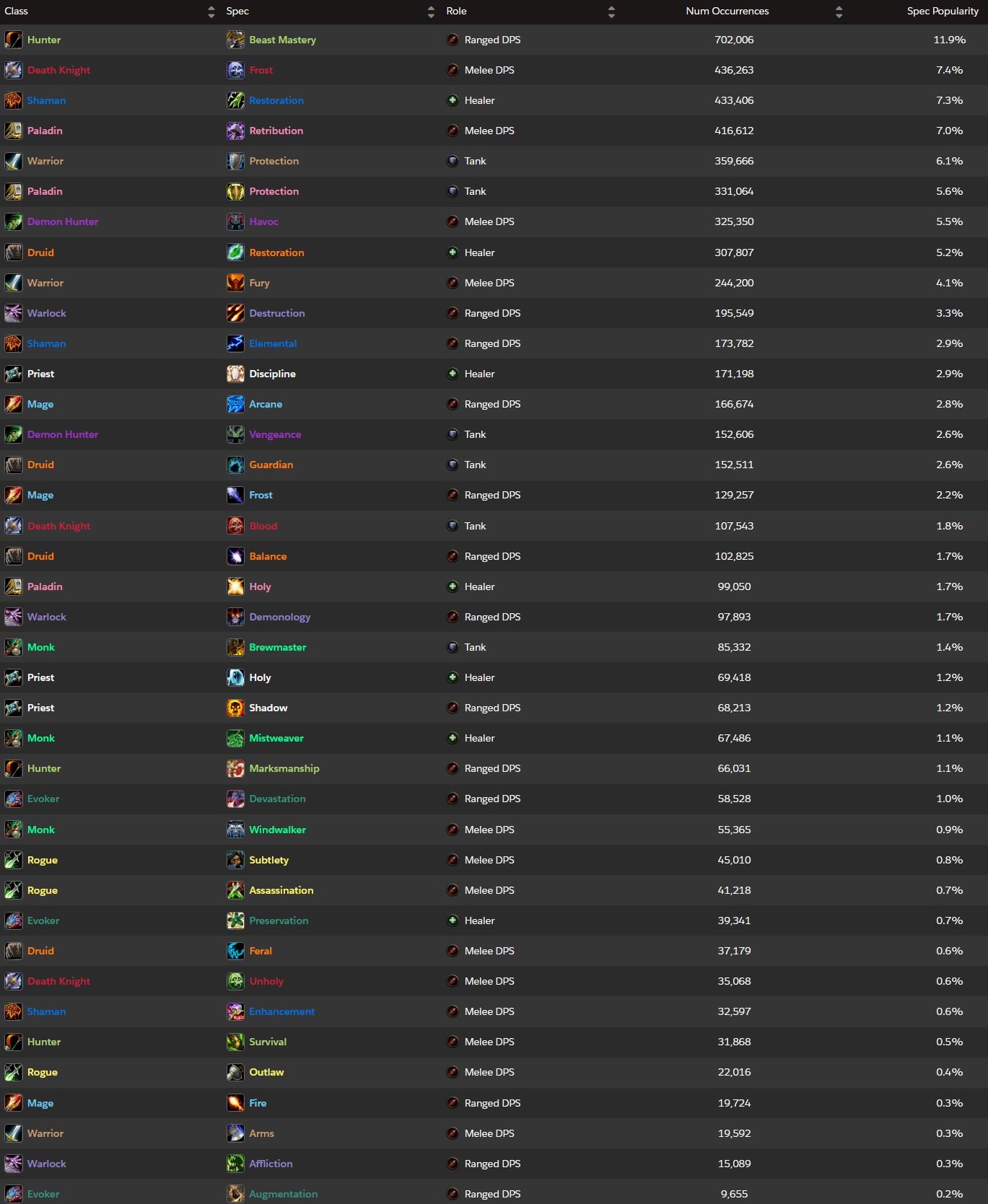 For more stats, you can also head on over to our class guides and tier lists, as well as the full Raider.IO data.
