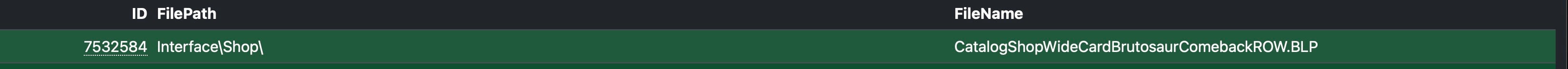 This week’s Midnight Alpha build adds an interesting entry to the InterfaceManifestationData database table named CatalogShopWideCardBrutosaurComebackROW.BLP.