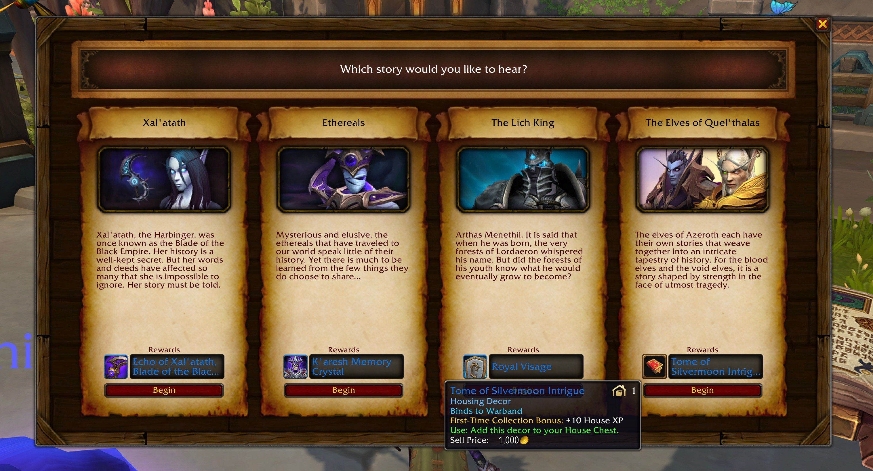 Tome of Silvermoon Intrigue decor to your House Chest. Here’s what it looks like in the decor catalogue in-game: