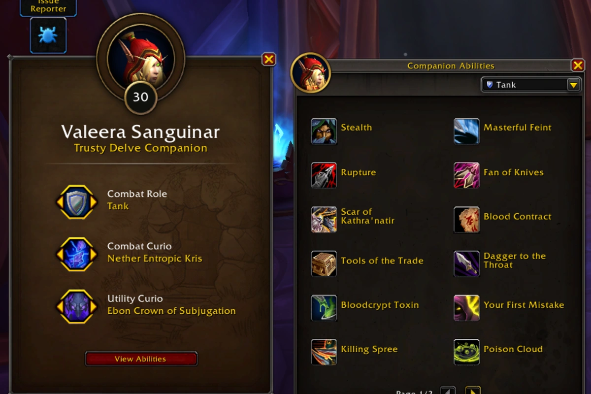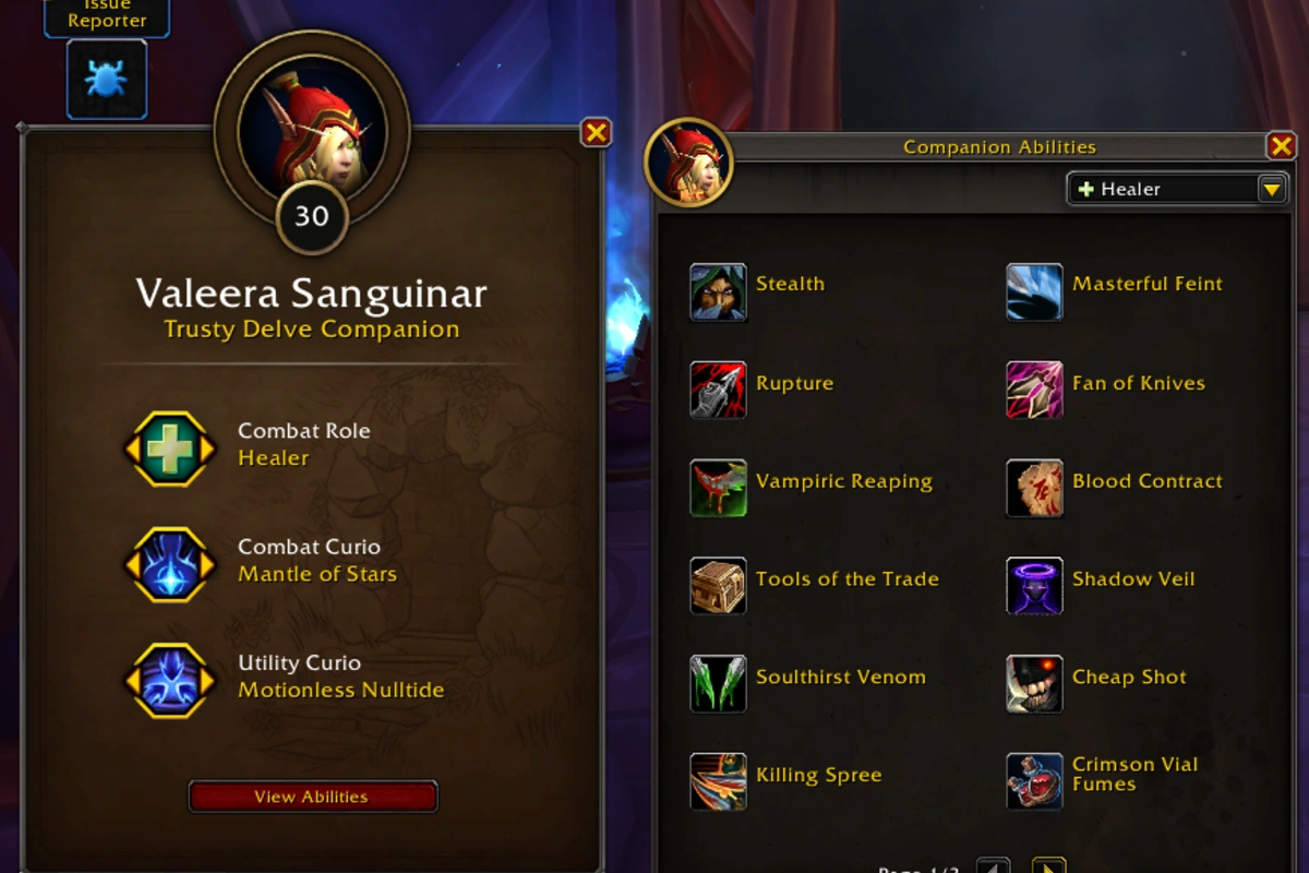 Valeera is the new delve companion for Midnight. Like Brann in The War Within, you can set her up as a DPS, Healer, or Tank. Each role gives her access to new abilities.