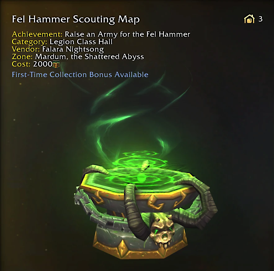 Meanwhile fel green swirls of demon energy make this the perfect decor for Demon Hunters to stand over and monologue about the sacrifice it takes to unlock it. Players unlock this decor by recruiting 20 troops with a Demon Hunter and earning the Raise an Army for the Fel Hammer achievement, to purchase it for 2,000 Order Resources.