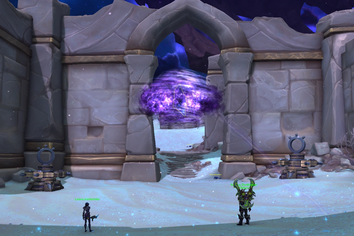 Leona Darkstrider says: Quickly, (Your name). Push him through the portal, or he’ll bring this cave down around us!