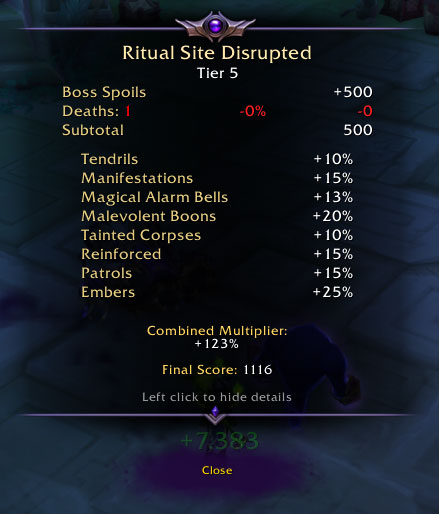 - Each subsequent Ritual Site completion gives you reputation rewards relative to your final score.