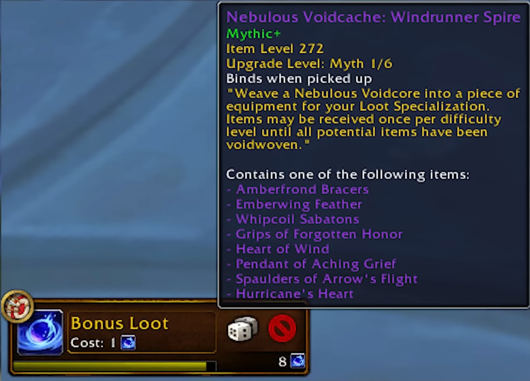 For Mythic+, Bountiful Delves, and Nightmare Prey rolls using Nebulous Voidcores, items will match the gear quality found in the Great Vault for completing that activity. For example, using a Voidcore in a Mythic+10 or higher dungeon will award a Myth track item.