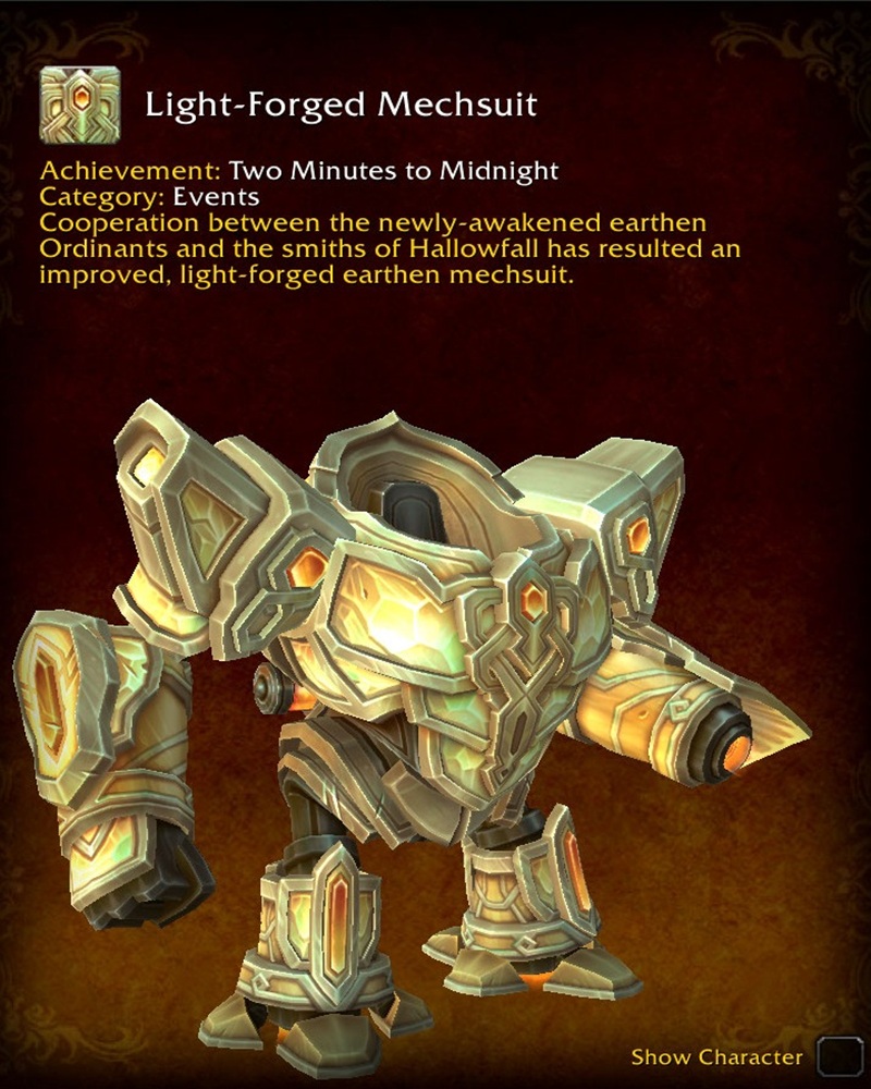 There are two feat of strength achievements related to this event, and notably attached to one of them is a mount reward and a title.