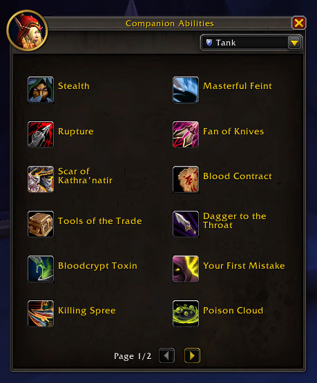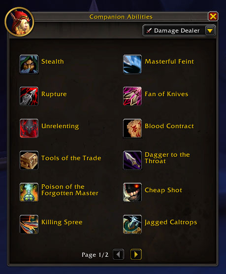 In the DPS role, Valeera will gain access to the following abilities: