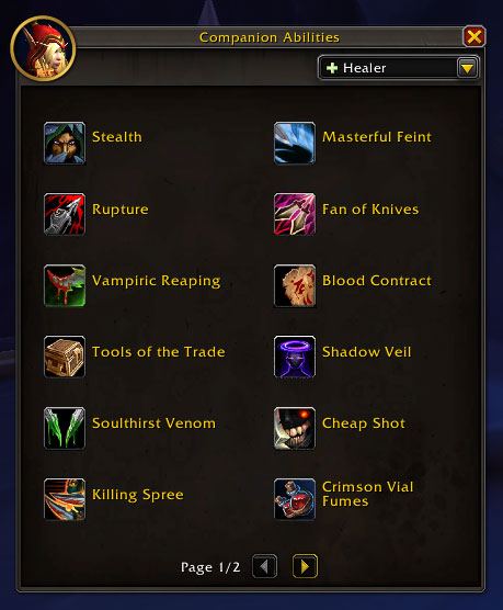 Valeera gains access to the following abilities when in the Healing role:
