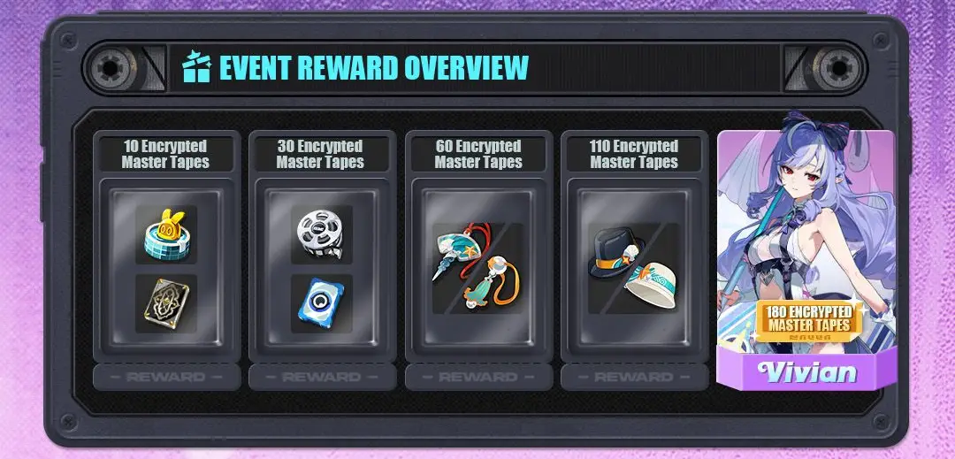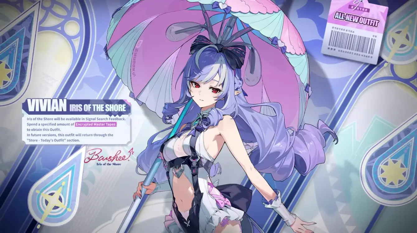 Signal Search Thank-You Gift Limited-Time Signal Search Event | After Version 2.3 Update To End of Version 2.4 (Server Time) | Vivian’s Iris of the Shore Outfit, various Proxy Accessories, Master Tapes, Boopons, and more *Only available on Limited-Time Banners from Version 2.3 to Version 2.4 |
